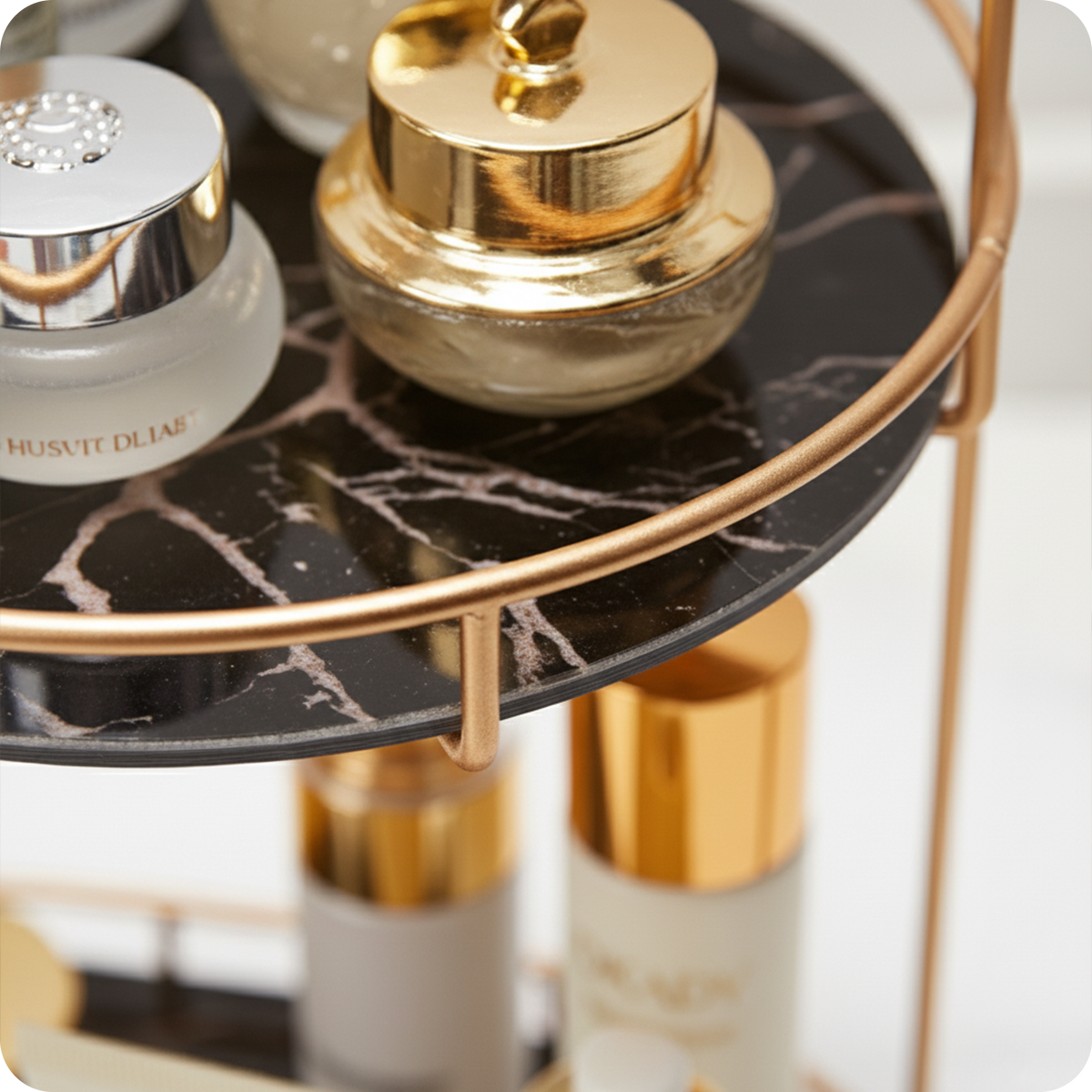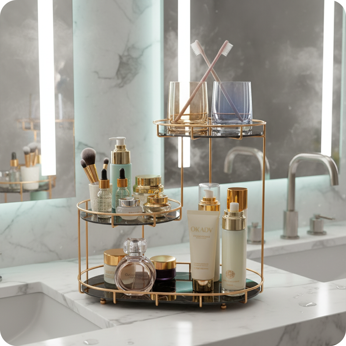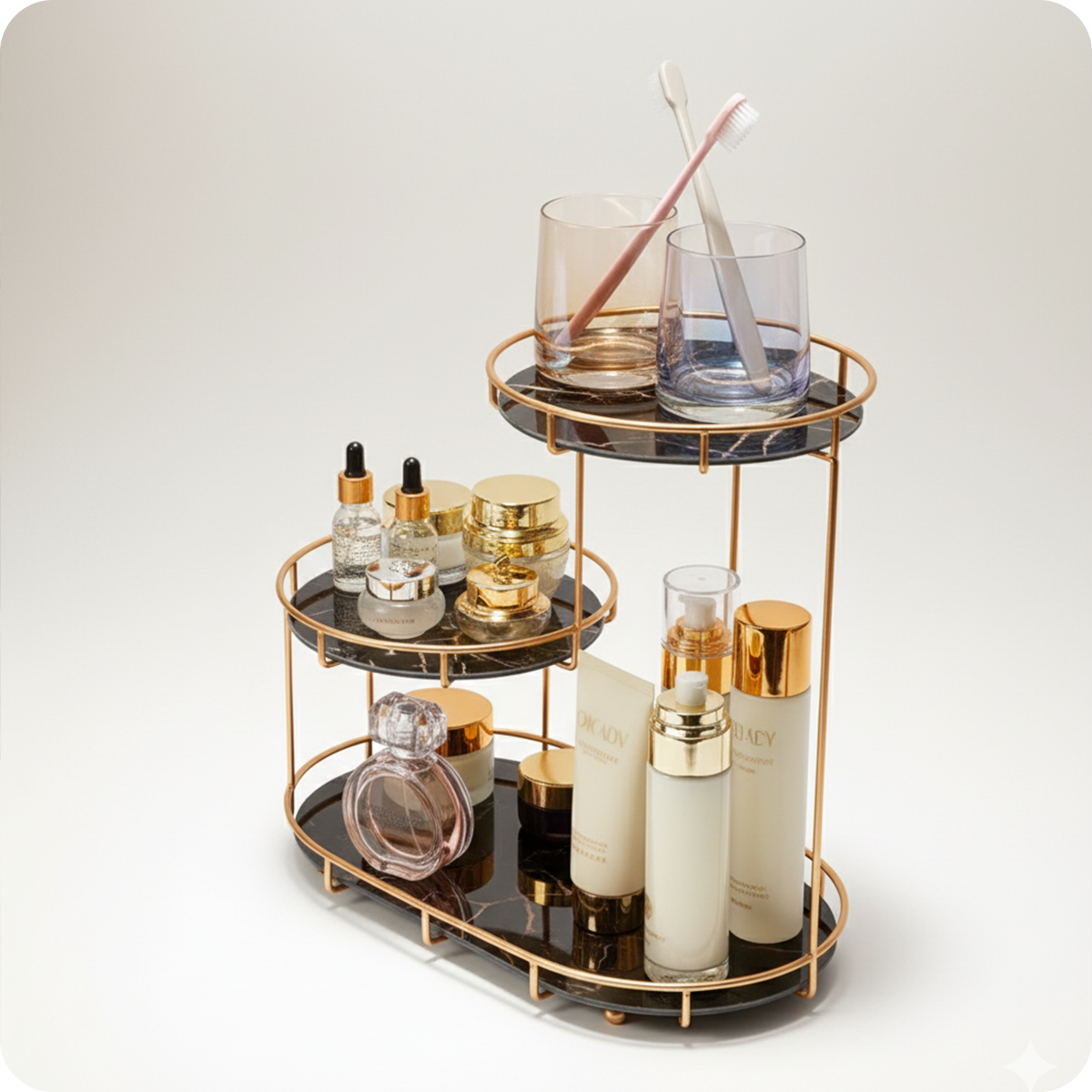 Whether it's your bathroom, living room, dressing table, or bedroom, this rack effortlessly complements any space with its beautiful and stylish design. Stack up your favorite perfumes and lotions to add an extra touch of glamour to your daily routine.
