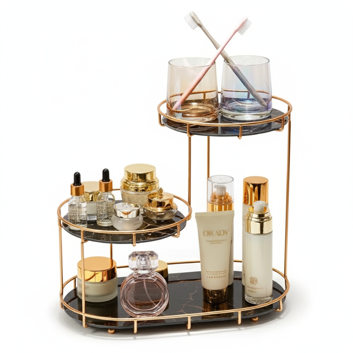 Tired of your cosmetics cluttering up your space? Say goodbye to chaos and hello to the epitome of modern organization with our 3 Layer Iron Storage Rack! π