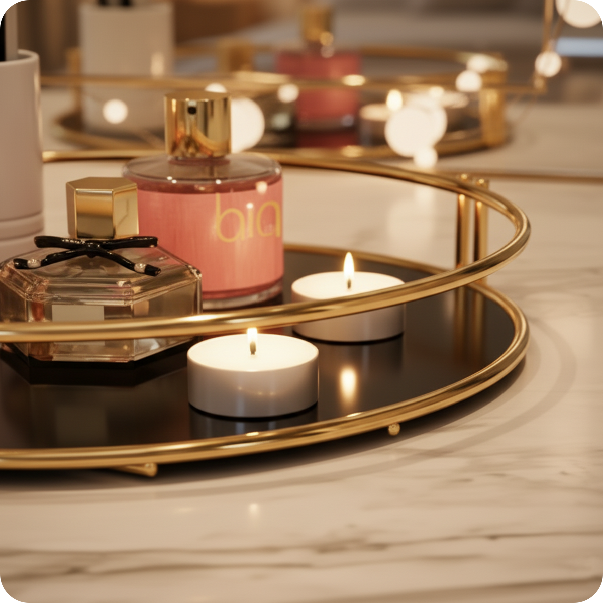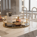 Circle Round Size 10 inches and 9.5 x 9.5 x 2 inches (L x W x H) 3mm Acrylic Glass Color: BlackSmall size. Large capacity• Keep your makeup organized with this cosmetic shelf.• Perfect for storing makeup accessories.• Easy to access and find your favorite products.• Saves space on your vanity or dresser.